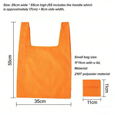 पर्यावरण के अनुकूल पुनर्नवीनीकरण योग्य फोल्डेबल टोटे बैग टिकाऊ रिपस्टॉप पॉलिएस्टर सामग्री से बना है।यह पुनः प्रयोज्य तह करने योग्य किराने का सामान भंडारण बैग जलरोधक सुरक्षा प्रदान करता है और प्रचार अनुकूलन के लिए आदर्श है.