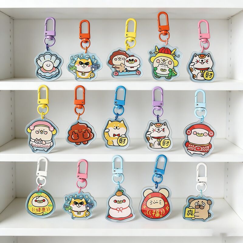 ब्रांडिंग और प्रचार अनुप्रयोगों के लिए कस्टम प्रिंटिंग के साथ प्रीमियम व्यक्तिगत एक्रेलिक कीचेन।